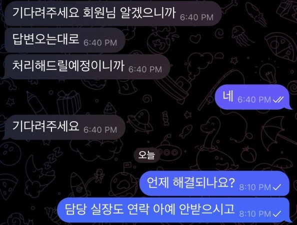 그래서 조용히 환불만 요청했는데 알아본다며 시간만 끌다가 결국 잠수 타더군요.