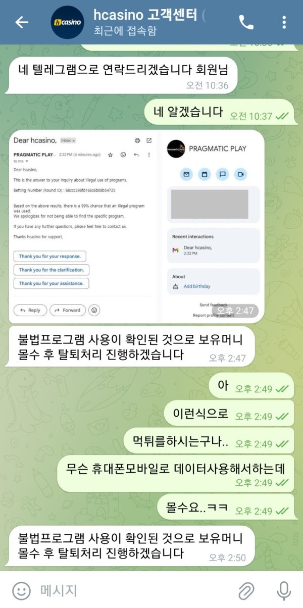 결국 조작된 증거까지 가져와서는 저를 프로그램 이용자라고 몰아붙이며 먹튀를 쳤습니다.