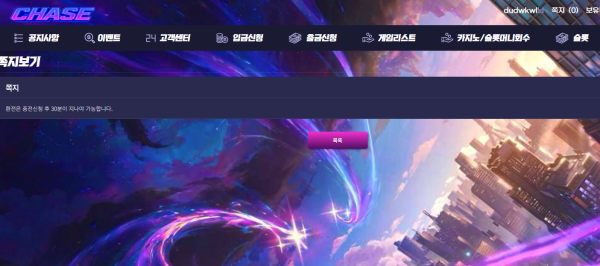 체이스카지노 아무 의심 없이 가입했는데 결국 환전이 막혀 버린 먹튀업체였습니다.