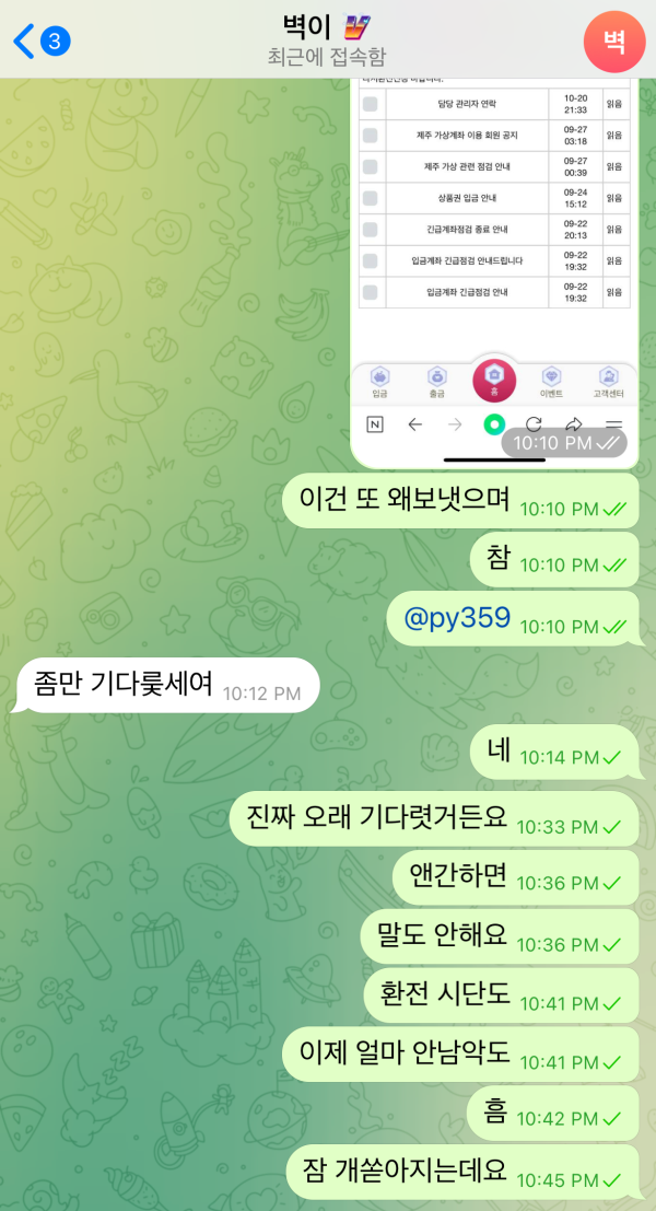 어쩐지 이상해서 보니 텔레그램과 사이트 문의가 모두 막혀 있었습니다.