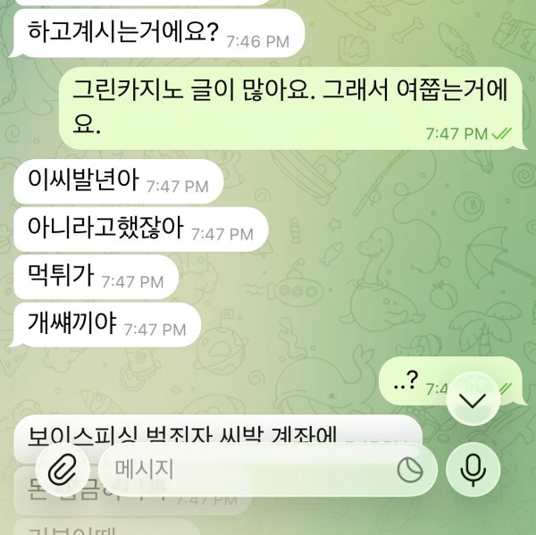 이상해서 검색해 보니 먹튀 글이 많았고, 그걸 묻자 욕설을 하더니 계정과 연락 수단을 전부 막아버렸습니다.