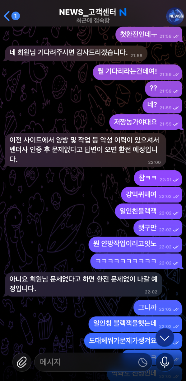 뉴스카지노 이용하다가 너무 황당한 먹튀 사건을 겪었습니다.