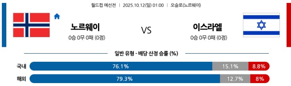 10월12일 월드컵예선 예선전분석 노르웨이 vs 이스라엘 스포츠분석픽, 스포츠뉴스