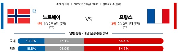 10월13일 U-20 월드컵분석 노르웨이 vs 프랑스 스포츠분석픽, 스포츠뉴스