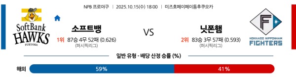 10월15일 NPB 일본야구분석 소프트뱅크 vs 니혼햄 스포츠분석픽, 스포츠뉴스