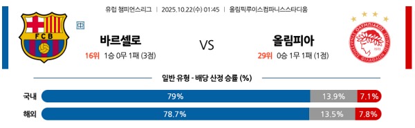 10월22일 UEFA 챔프언스리그분석 FC 바르셀로나 vs 올림피아코스 스포츠분석픽, 스포츠뉴스