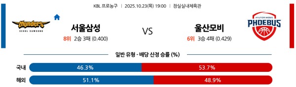 10월23일 KBL 국내농구분석 서울 삼성 vs 울산 현대모비스 스포츠분석픽, 스포츠뉴스