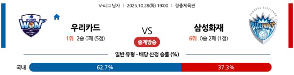 10월28일 남자V리그 국내배구분석 우리카드 vs 삼성화재 스포츠분석픽, 스포츠뉴스