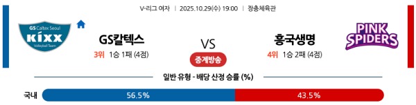 10월29일 여자V리그 한국배구분석 GS 칼텍스 vs 흥국생명 스포츠분석픽, 스포츠뉴스