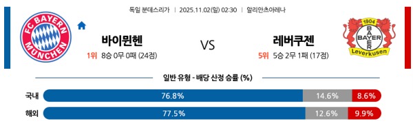 11월02일 분데스 분데스분석 바이에른 뮌헨 vs 레버쿠젠 스포츠분석픽, 스포츠뉴스