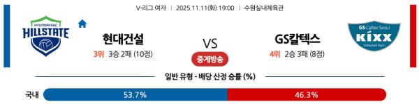 11월11일 여자V리그 국내배구분석 현대건설 vs GS 칼텍스 스포츠분석픽, 스포츠뉴스