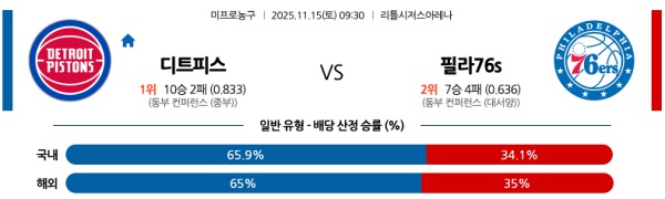 11월15일 NBA 미프로농구 분석 디트로이트 피스톤스 vs 필라델피아 스포츠분석픽, 스포츠뉴스