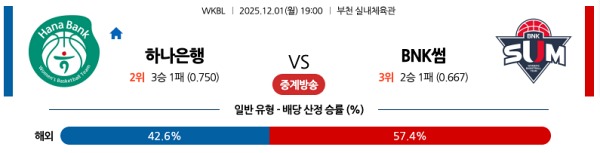 12월01일 WKBL 한국농구분석 하나은행 vs BNK썸 스포츠분석픽, 스포츠뉴스