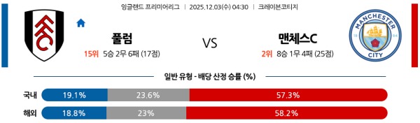 12월03일 EPL 이피엘분석 풀럼 vs 맨체스터 시티 스포츠분석픽, 스포츠뉴스