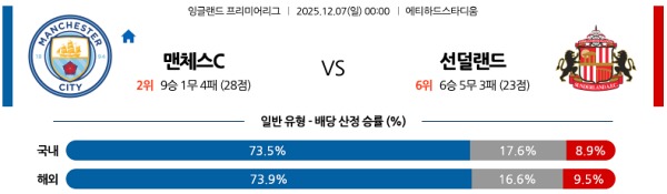 12월07일 EPL 이피엘분석 맨시티 vs 선더랜드 스포츠분석픽, 스포츠뉴스