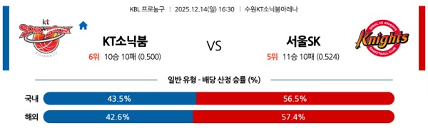 12월14일 KBL 한국농구분석 수원 KT vs 서울 SK 스포츠분석픽, 스포츠뉴스