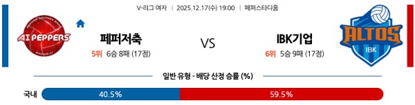12월17일 여자V리그 한국배구분석 페퍼저축은행 vs IBK 기업은행 스포츠분석픽, 스포츠뉴스