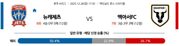 12월26일 호주A리그 호주축구분석 뉴캐슬 제츠 FC vs 맥아서 FC 스포츠분석픽, 스포츠뉴스
