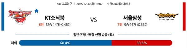 12월30일 KBL 한국농구분석 수원 KT vs 서울 삼성 스포츠분석픽, 스포츠뉴스