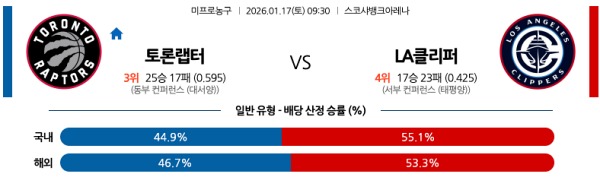 1월17일 NBA 해외농구분석 토론토 랩터스 vs LA 클리퍼스 스포츠분석픽, 스포츠뉴스