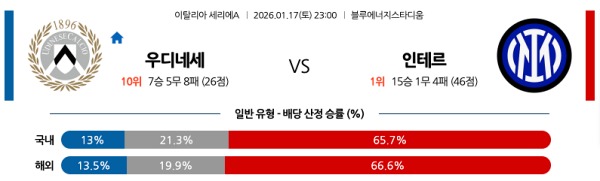 1월17일 세리에A 세리에분석 우디네세 칼초 vs 인터 밀란 스포츠분석픽, 스포츠뉴스