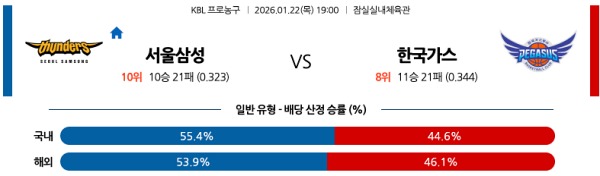 1월22일 KBL 한국농구분석 서울 삼성 vs 대구 한국가스공사 스포츠분석픽, 스포츠뉴스