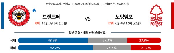 1월25일 EPL 이피엘분석 브렌트퍼드 FC vs 노팅엄 포레스트 스포츠분석픽, 스포츠뉴스