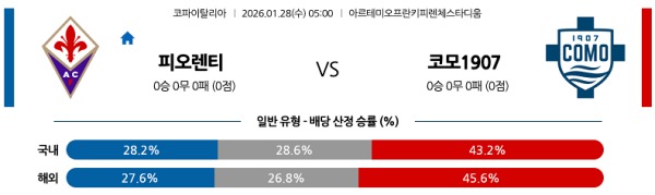 1월28일 코파 이탈리아분석 피오렌티나 vs 코모 1907 스포츠분석픽, 스포츠뉴스