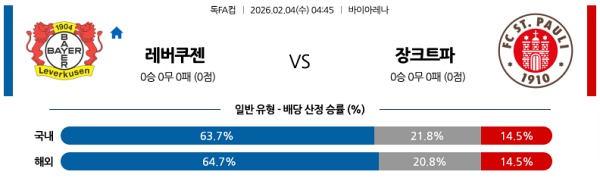 2월04일 독일FA컵 독일리그분석 레버쿠젠 vs 장크트 파울리 스포츠분석픽, 스포츠뉴스