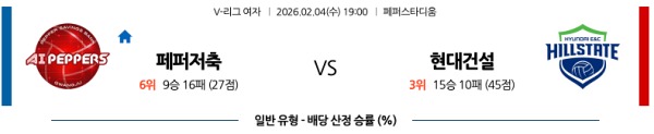 2월04일 여자V리그 한국배구분석 페퍼저축은행 vs 현대건설 스포츠분석픽, 스포츠뉴스