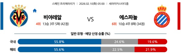 2월10일 라리가 라리가분석 비야레알 vs RCD 에스파뇰 스포츠분석픽, 스포츠뉴스