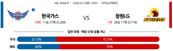 2월10일 KBL 한국농구분석 대구 한국가스공사 vs 창원 LG 스포츠분석픽, 스포츠뉴스