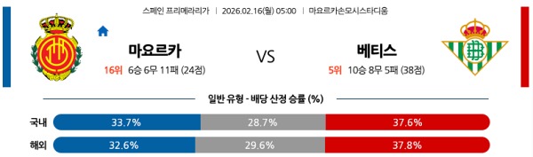 2월16일 라리가 라리가분석 RCD 마요르카 vs 레알 베티스 스포츠분석픽, 스포츠뉴스