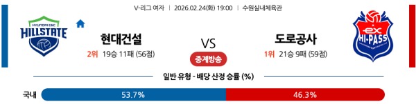 2월24일 여자V리그 한국배구분석 현대건설 vs 한국 도로공사 스포츠분석픽, 스포츠뉴스