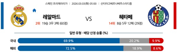 3월03일 라리가 스페인리그분석 레알 마드리드 vs 헤타페 CF 스포츠분석픽, 스포츠뉴스