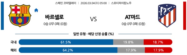 3월04일 코파델레이 스페인리그분석 바르셀로나 vs 아틀레티코 마드리드 스포츠분석픽, 스포츠뉴스