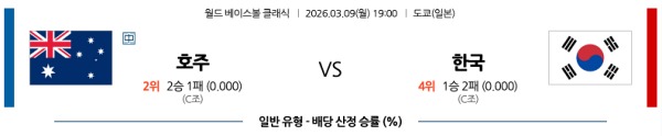 3월09일 WBC WBC분석 호주 vs 대한민국 스포츠분석픽, 스포츠뉴스