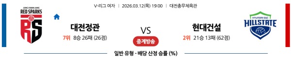 3월12일 여자V리그 한국배구분석 정관장 vs 현대건설 스포츠분석픽, 스포츠뉴스