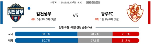 3월17일 K리그1 한국축구분석 김천상무 vs 광주FC 스포츠분석픽, 스포츠뉴스