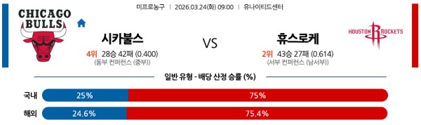 3월24일 NBA 미국농구분석 시카고 불스 vs 휴스턴 로켓츠 스포츠분석픽, 스포츠뉴스