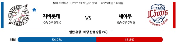 3월27일 NPB 일본야구분석 지바롯데 vs 세이부 스포츠분석픽, 스포츠뉴스