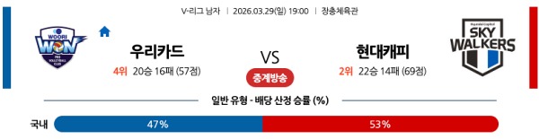 3월29일 남자V리그 한국배구분석 우리카드 vs 현대캐피탈 스포츠분석픽, 스포츠뉴스