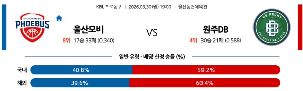 3월30일 KBL 한국농구분석 울산 현대모비스 vs 원주 DB 스포츠분석픽, 스포츠뉴스