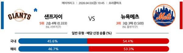 4월03일 MLB 메이저리그분석 샌프란시스코 vs 뉴욕메츠 스포츠분석픽, 스포츠뉴스