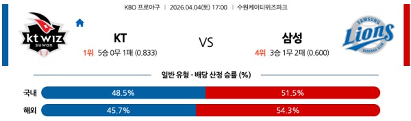 4월04일 KBO 한국야구분석 KT vs 삼성 스포츠분석픽, 스포츠뉴스