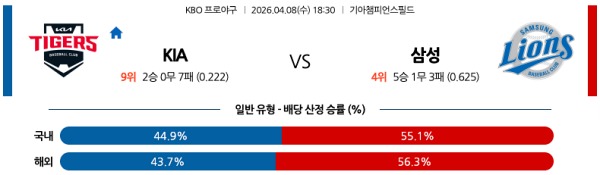4월08일 KBO 한국야구분석 KIA vs 삼성 스포츠분석픽, 스포츠뉴스