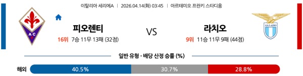 4월14일 세리에A 이탈리아리그분석 피오렌티나 vs 라치오 스포츠분석픽, 스포츠뉴스