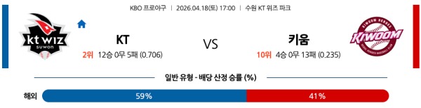 4월18일 KBO 한국야구분석 KT vs 키움 스포츠분석픽, 스포츠뉴스