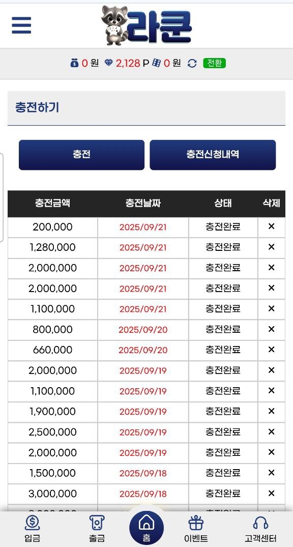 이벤트로 사람 끌어놓고 돈 따면 차단하는 곳이니 이용하지 마시길 바랍니다.