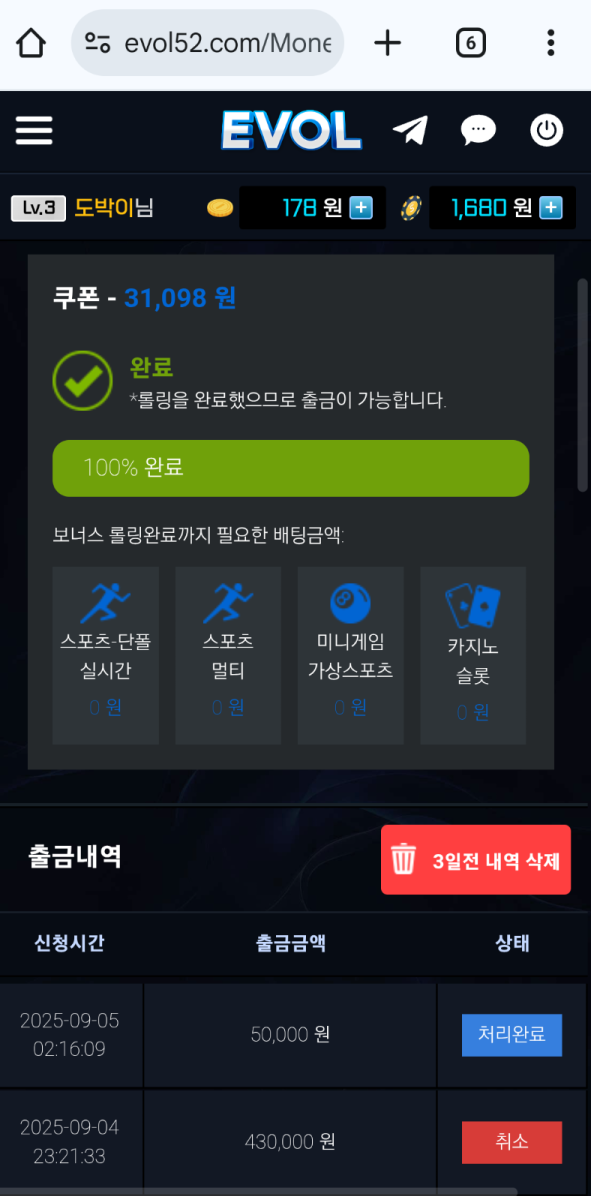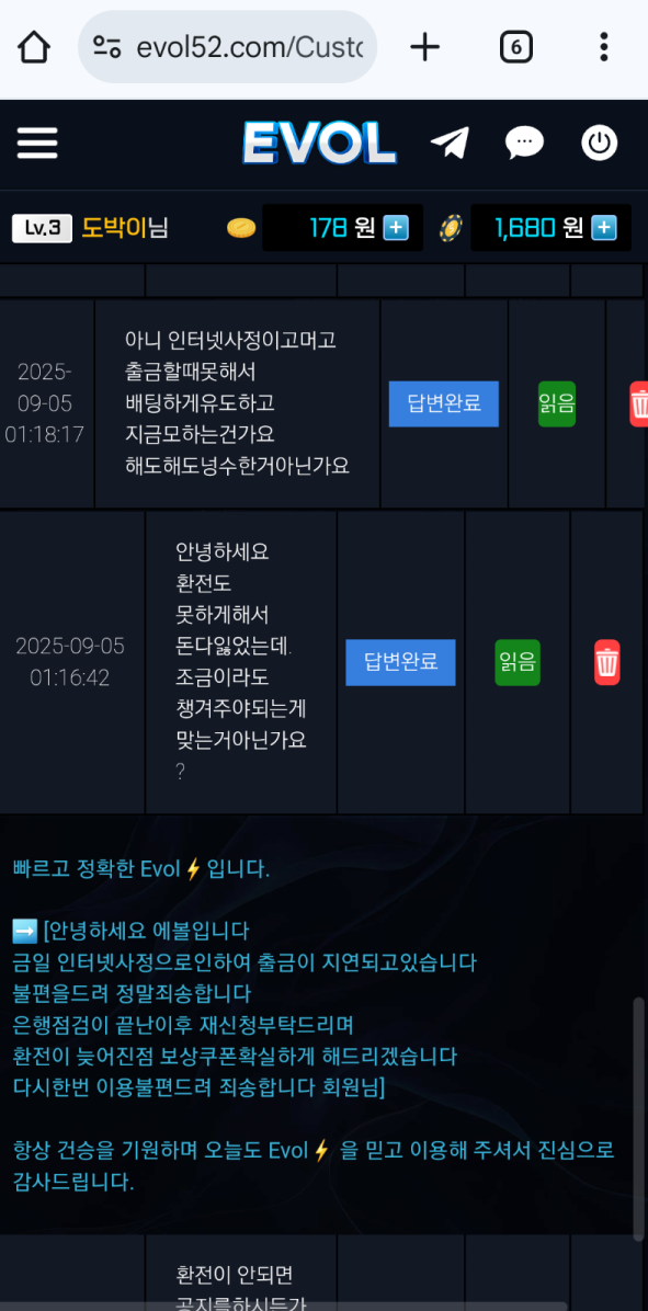 에볼이라는 먹튀사이트를 오래 이용해 와서 이번에도 별생각 없이 5만원을 충전했는데요.
